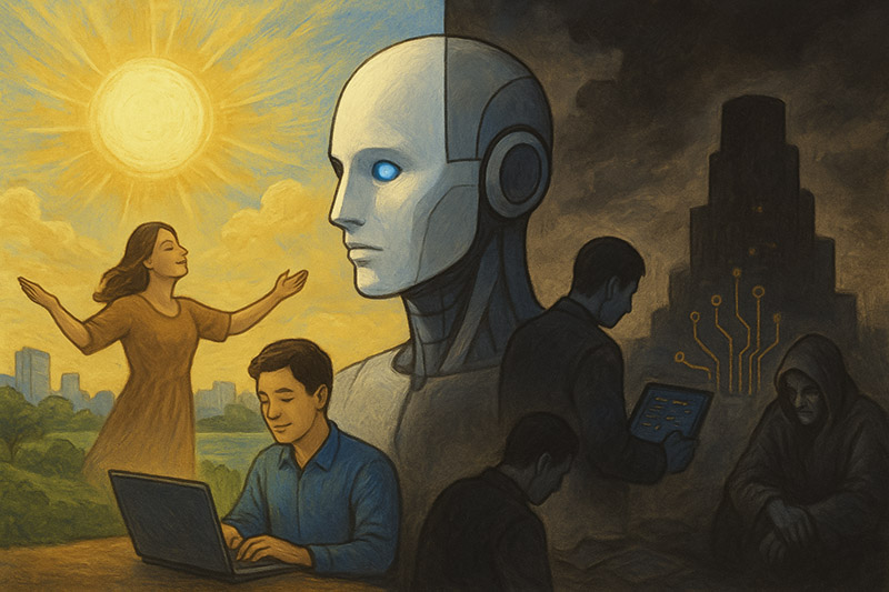 AGI가 가져올 미래에 대해 전문가들은 크게 두 가지 상반된 비전을 제시하고 있습니다. 김대식 교수님은 이를 '천국'과 '지옥'으로 비유하며 흥미로운 관점을 제시합니다.